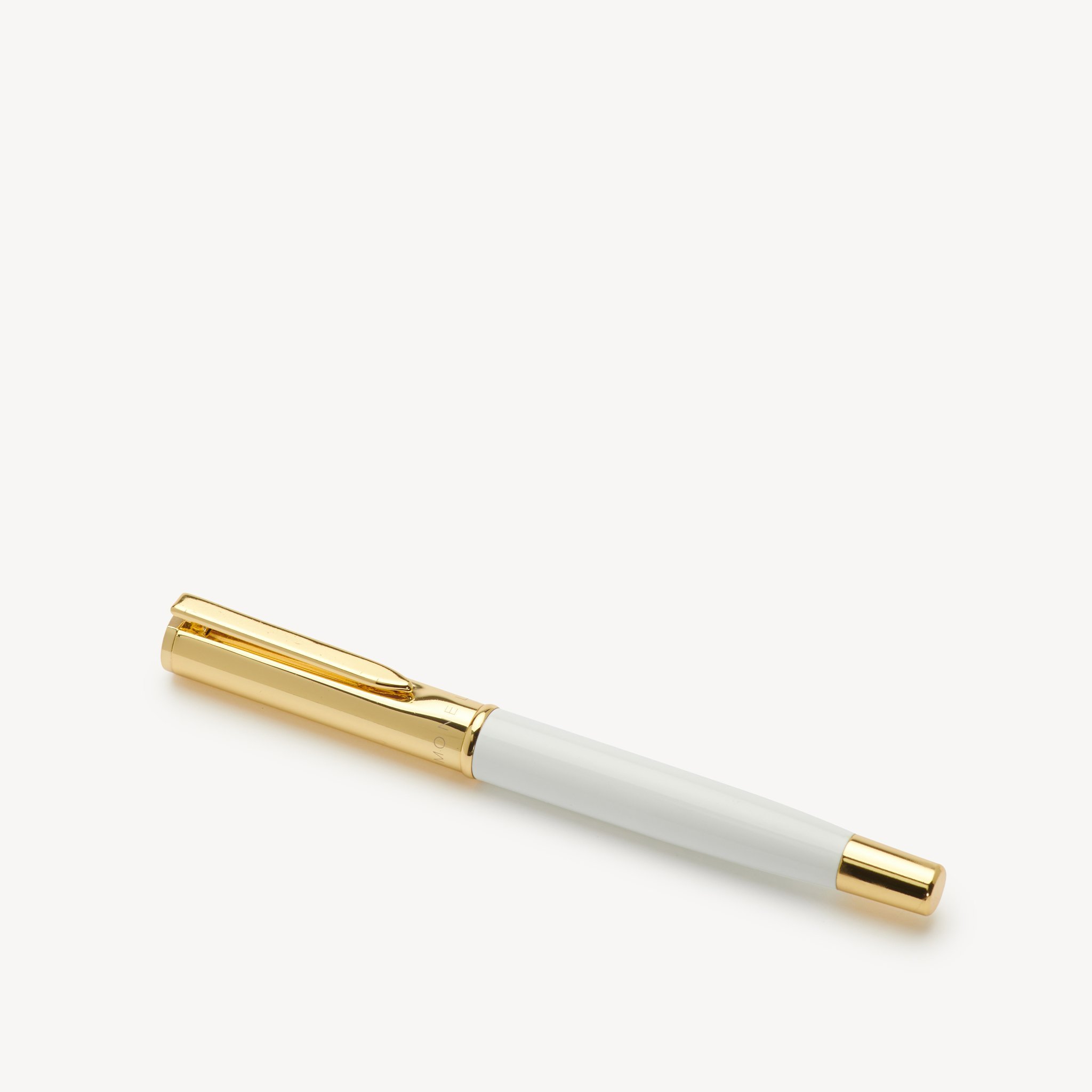 Signature Brass & White Enamel Pen. Our Signature Pen is an heirloom quality favorite, made to inspire letter writing, thank you notes, and a return to the tradition of longhand. Easily refillable to stand the test of time. Each pen rests in our hand-wrapped cotton paper keepsake box.