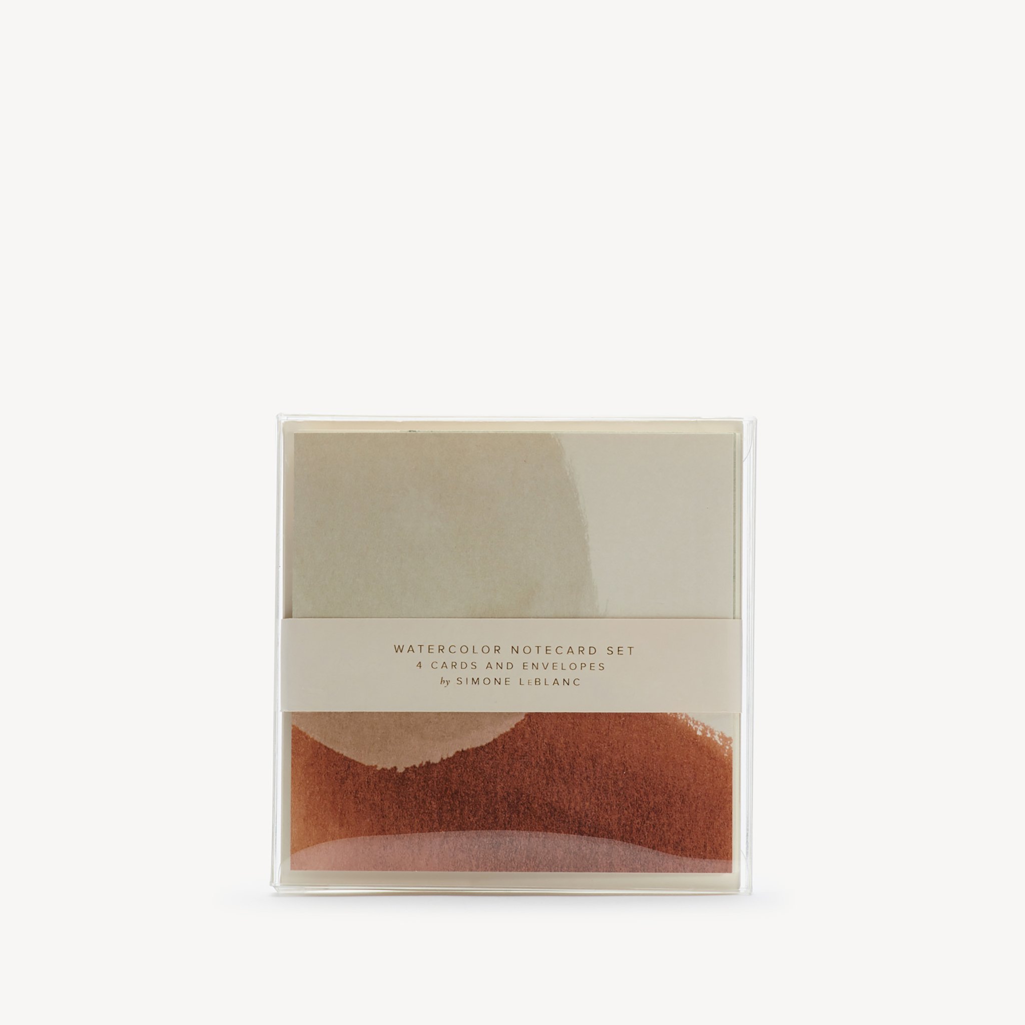 Watercolor Notecard Set. Designed to evoke the moods of the four elements, our watercolor notecard set is a welcome gift for all. Each card is blank inside, perfect for all occasions that call for a handwritten note. Includes four cards with matching envelopes.