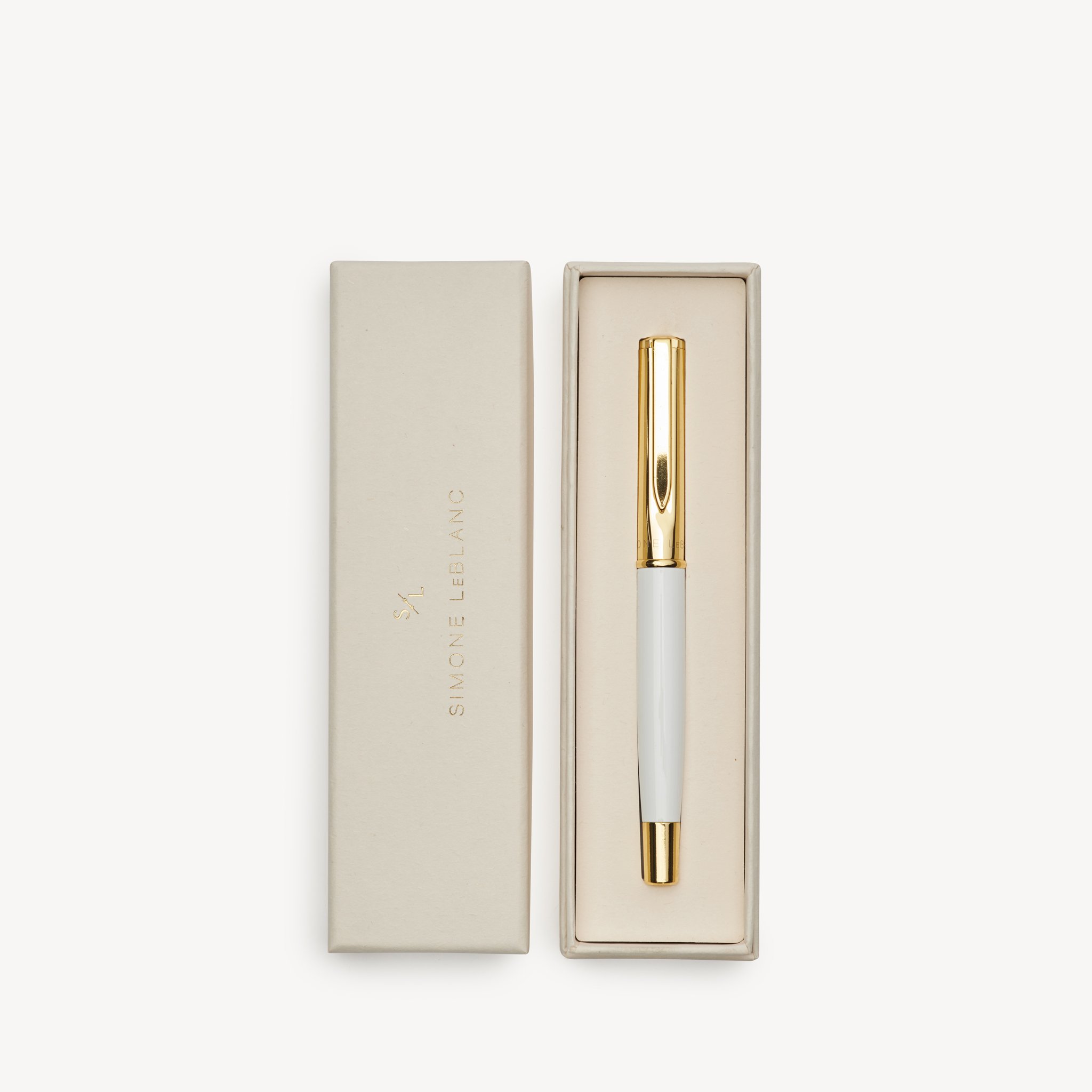 Signature Brass & White Enamel Pen. Our Signature Pen is an heirloom quality favorite, made to inspire letter writing, thank you notes, and a return to the tradition of longhand. Easily refillable to stand the test of time. Each pen rests in our hand-wrapped cotton paper keepsake box.