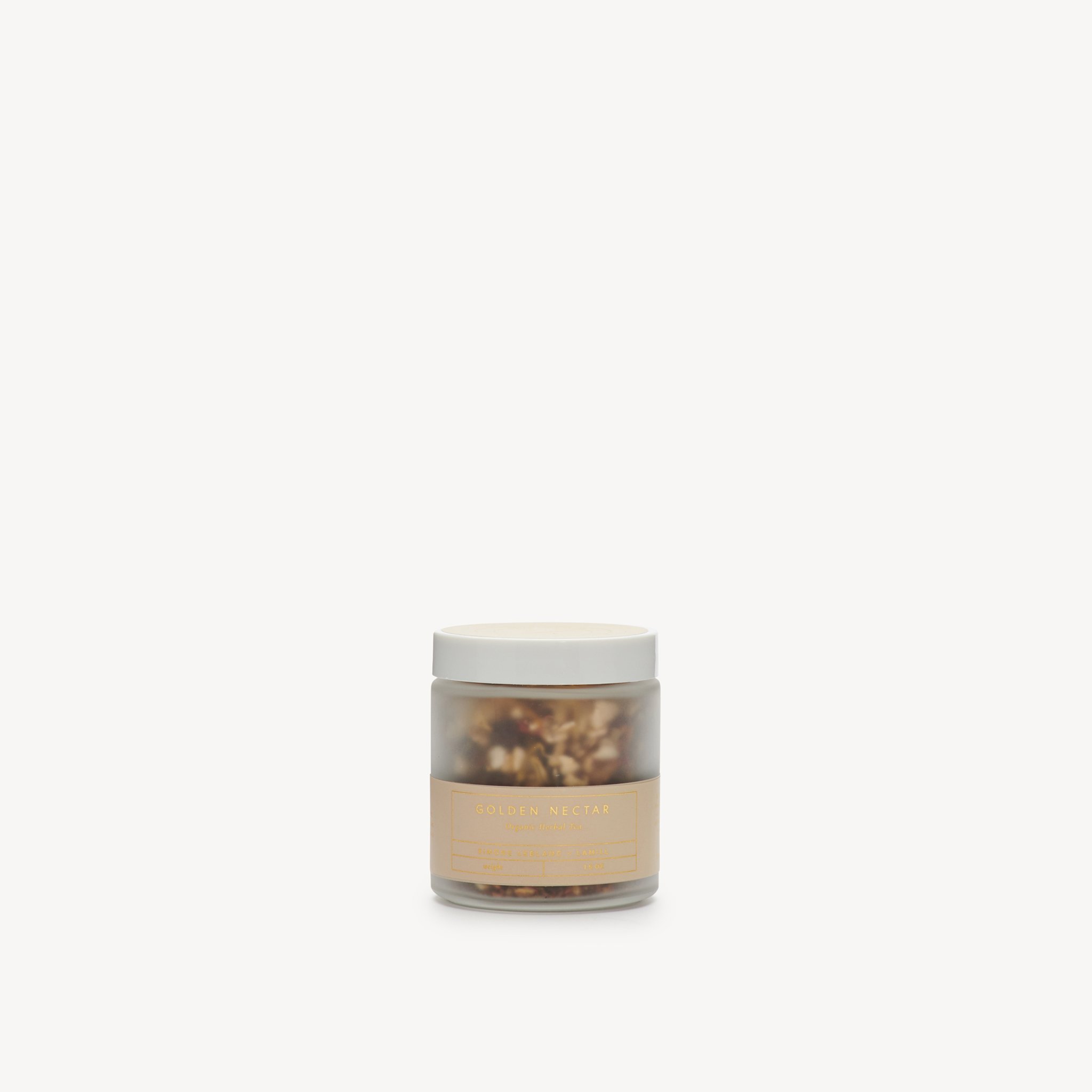 Our Golden Nectar Tea. A calming and delightful cup, this is an organic, non-caffeinated blend inspires a calming and bright mood. Made in collaboration with an atelier in California, our new 1.5 oz. vessel holds loose leaf tea that can brew up to 12 cups.