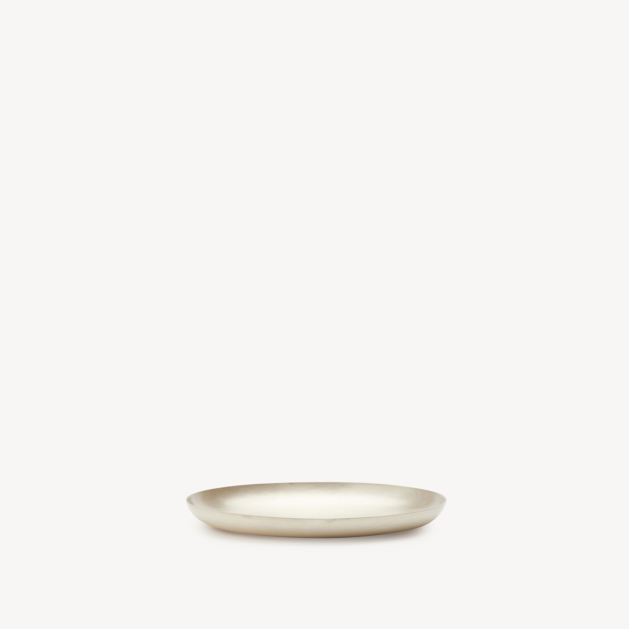 Fog Linen Round Silver Plate. Handcrafted with a raised edge, they’ll love these stunningly simple vessels as a catchall for tiny essentials in the nursery or on a dresser.